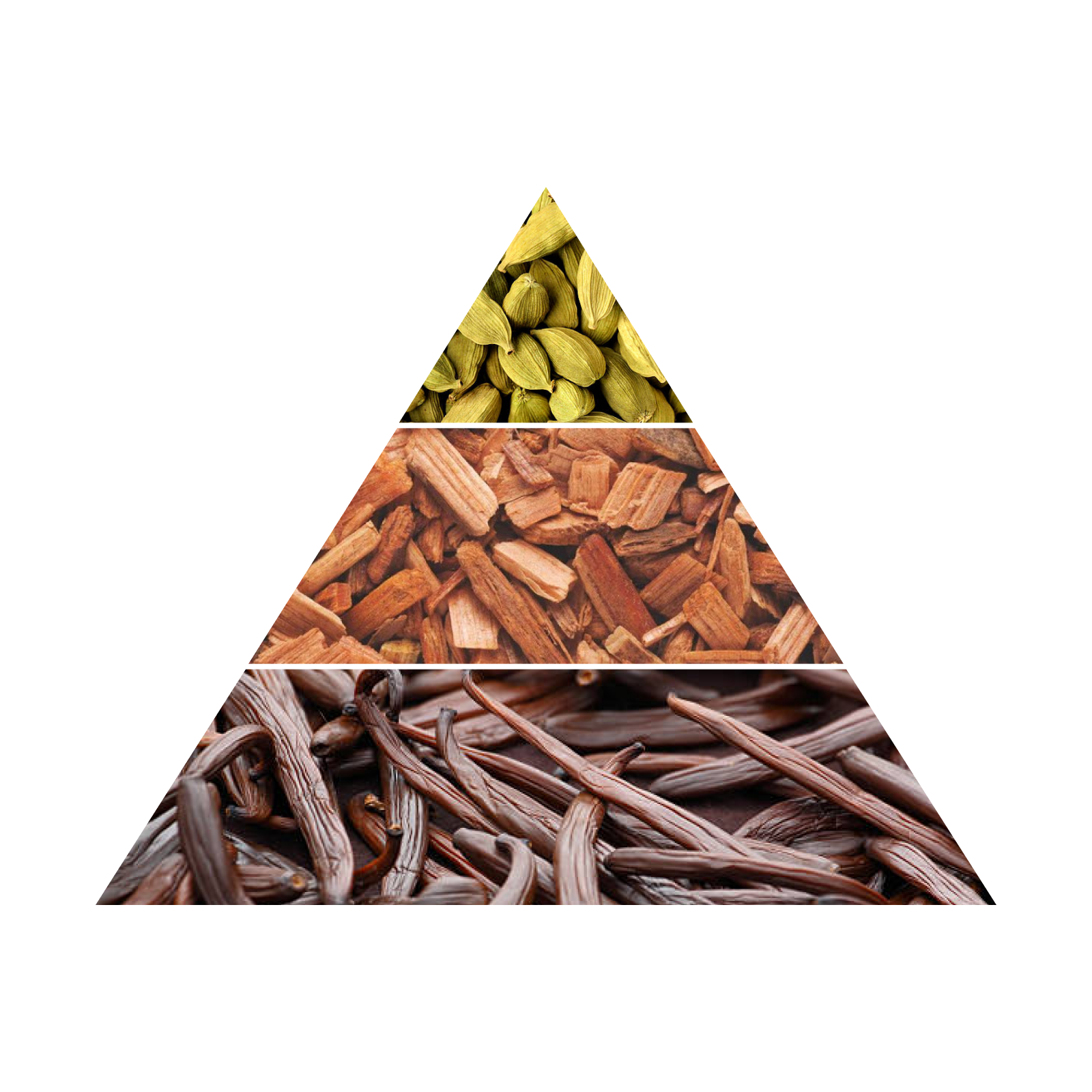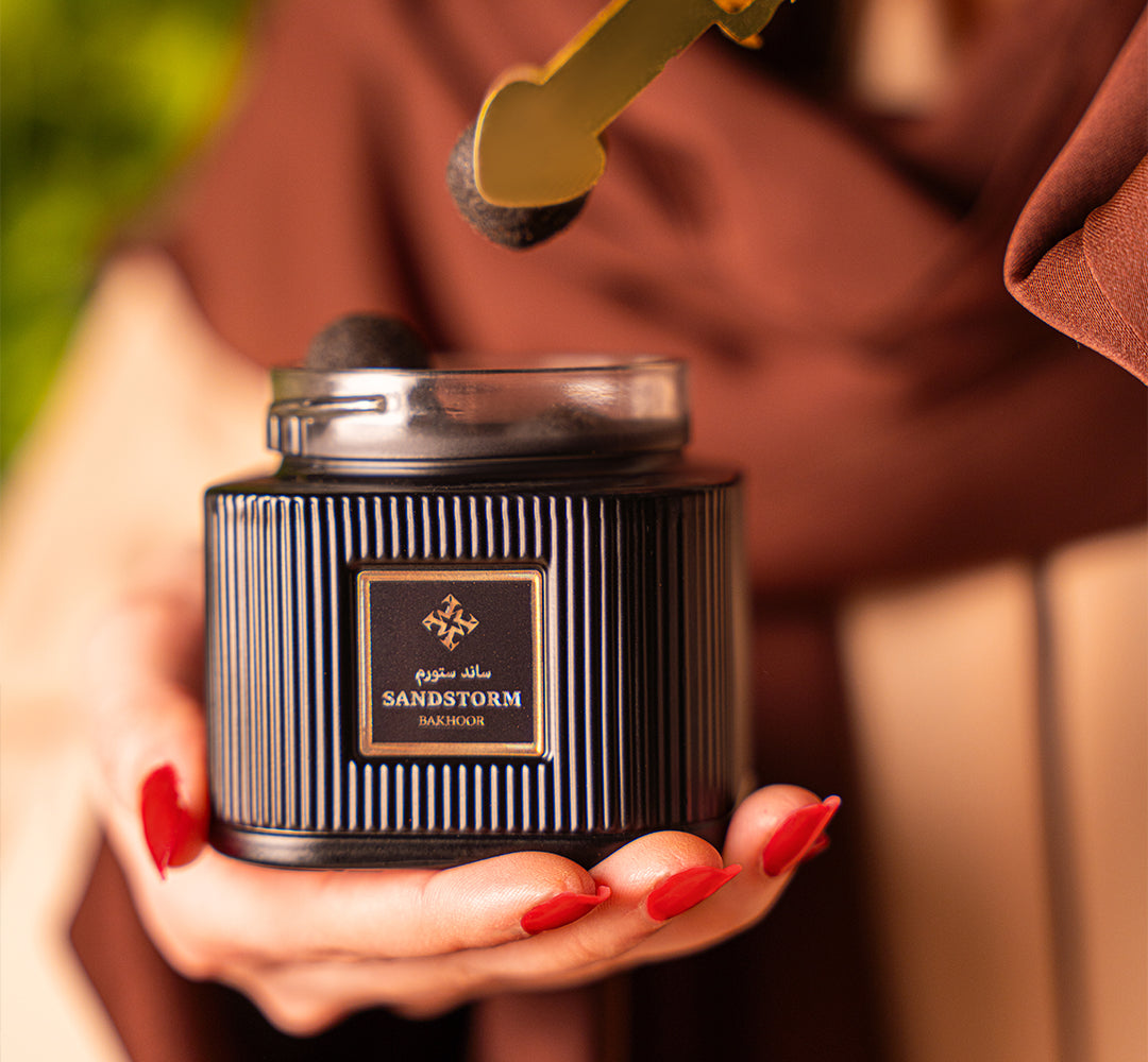 ينطلق بخور ساندستورم بطبقة عليا آسرة من الهيل الحار، البخور، والبرغموت، ثم تنساب من قلبه نفحات دافئة من الإليمي، وخشب الأرز، واللابدانوم، وتختتم الرحلة بروائح ناعمة من الستيراكس، الفانيليا، والمسك، ليمنح الحواس شعوراً بالسكينة والفخامة.