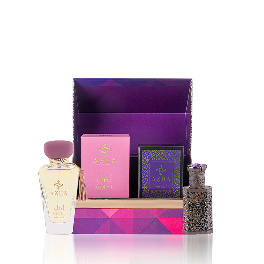 Indulge in the luxurious duo of Ramshah and Renad EDPs, a perfect pair for the modern woman. Ramshah offers a captivating floral and fruity blend, while Renad reveals a sophisticated and timeless fragrance. Together, they create a versatile set that exudes elegance and charm for every occasion.