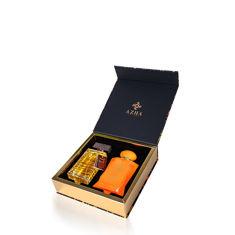 This captivating gift set pairs the bold and intense Al Oud Al Aswad, a deep oud fragrance for men, with the elegant and floral Arabian Lady, a graceful scent for women. Together, they offer a harmonious blend of strength and femininity, making this set a perfect gift for any occasion.