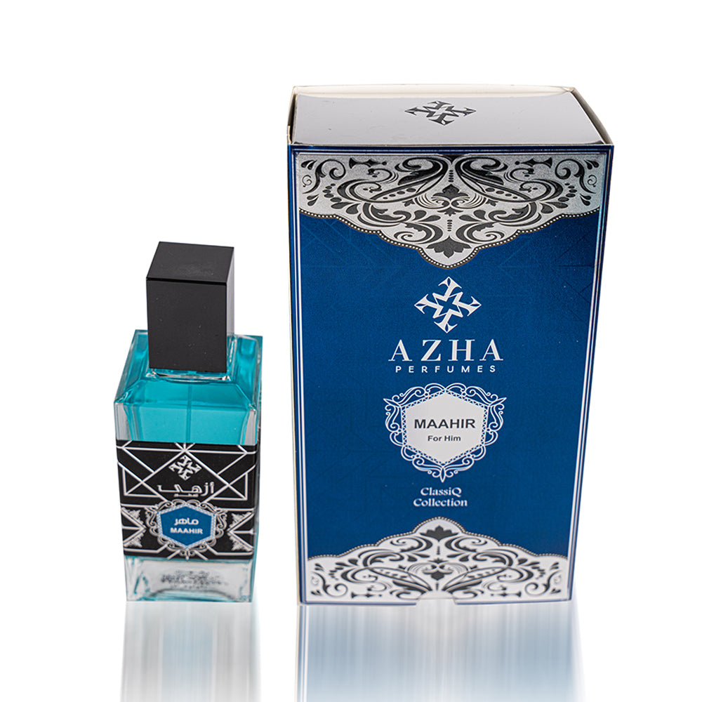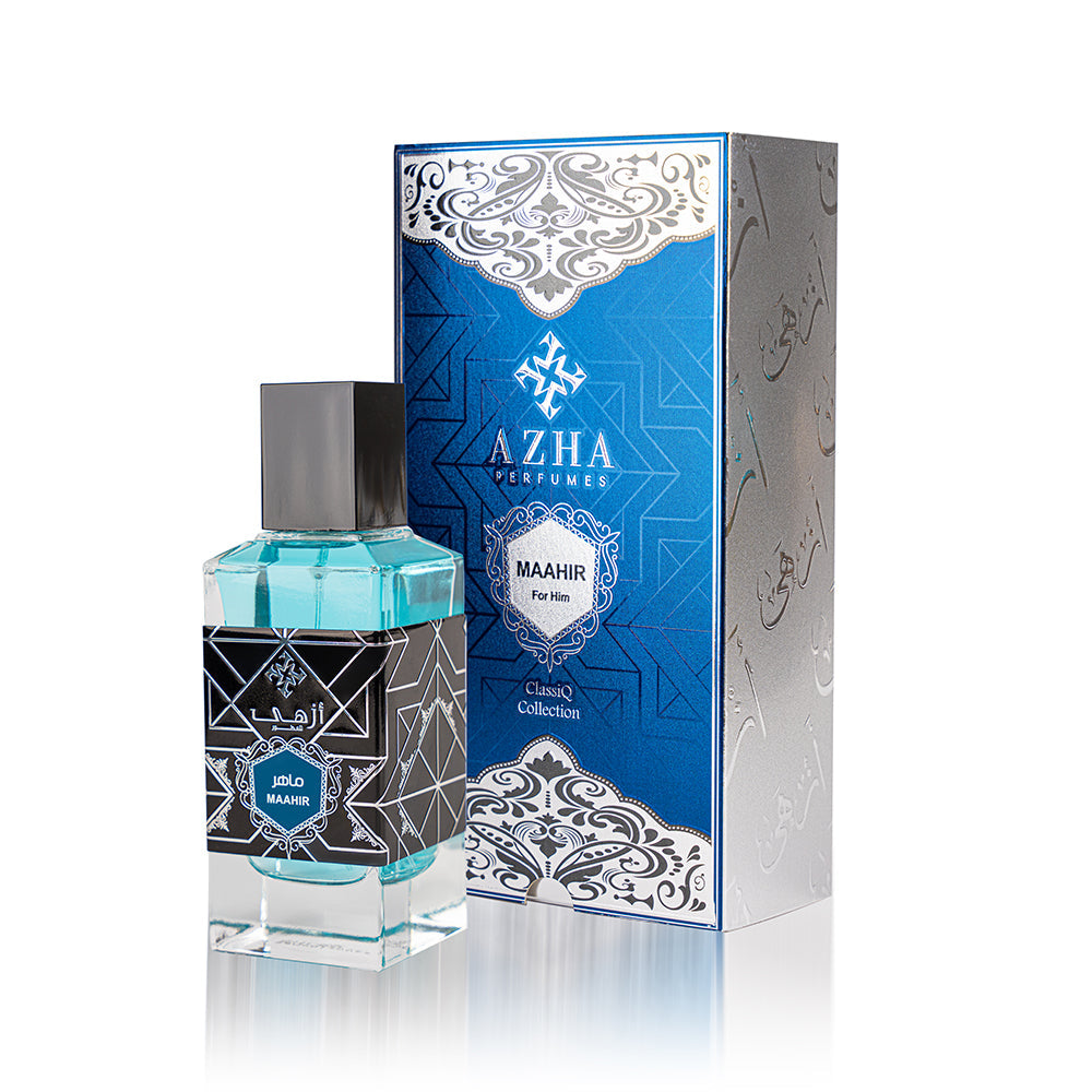 Unleash your charismatic side with Maahir from the Classiq Collection. This fragrance opens with refreshing marine and green notes, transitions to a heart of jasmine and delicate florals, and finishes with a captivating base of cedarwood, moss, amber, and musk. A true essence of elegance and vitality.