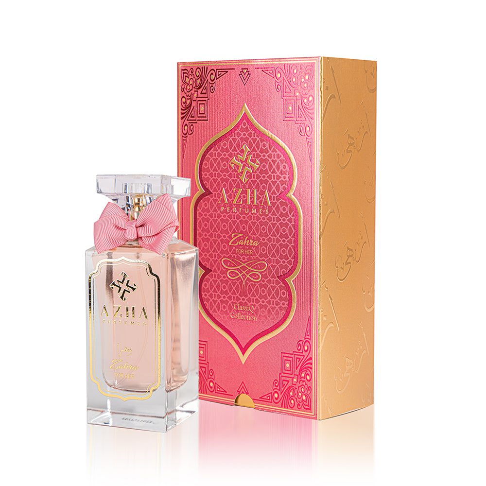 Zahra from the Classiq Collection is a harmonious blend of elegance and charm. It opens with the delicate sweetness of pear and ambrette, transitions to a heart of rose, iris, and ambrox, and finishes with a warm base of patchouli, cedarwood, and musk. A fragrance that exudes timeless sophistication.